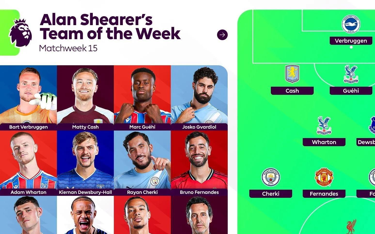 希勒评英超第15轮最佳阵:埃基蒂克、福登、B费、西蒙斯在列