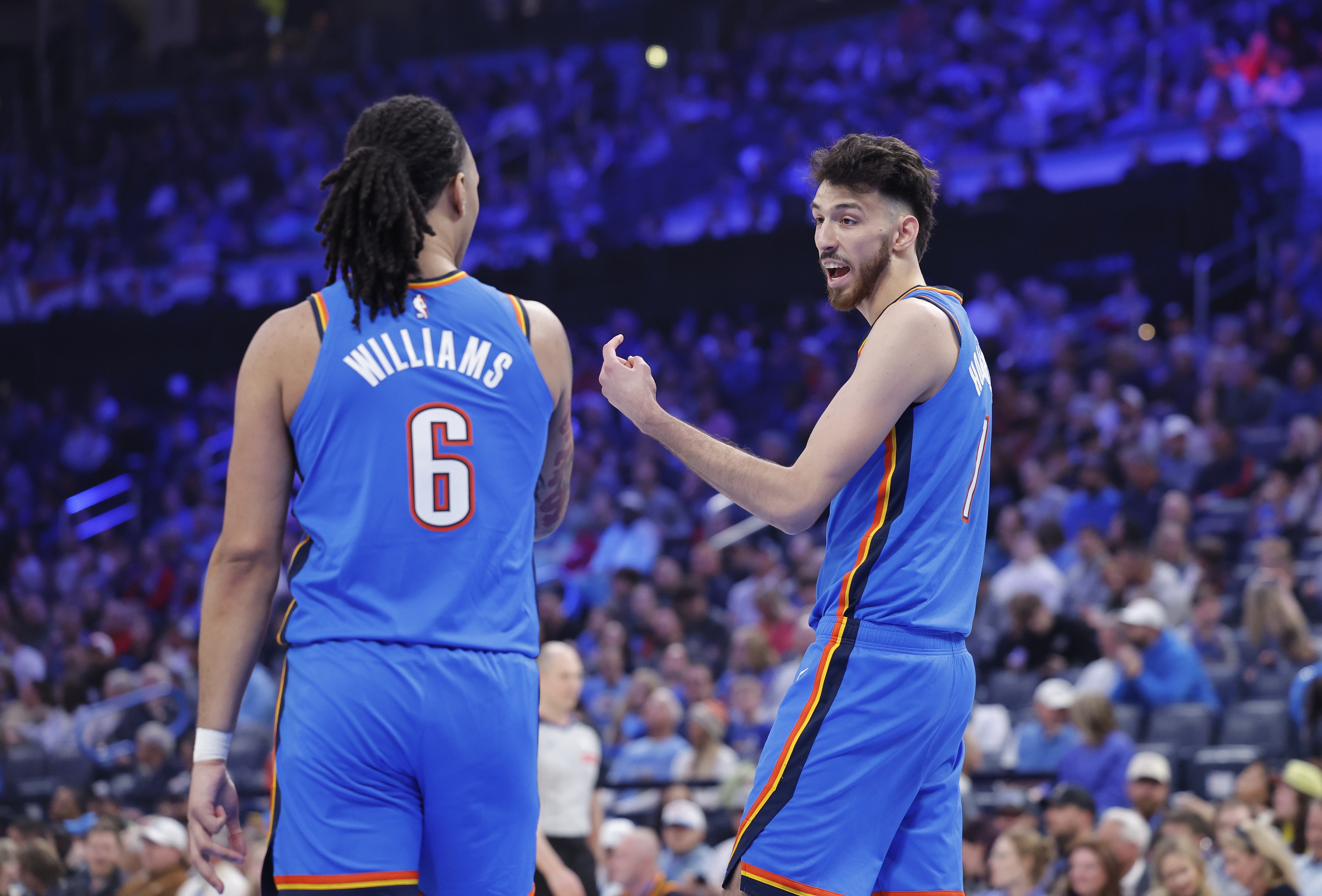 此役雷霆中锋切特-霍姆格伦攻防两端表现不错,打了33分钟14投6中,三分8中3、罚球6中5拿到20分11篮板5盖帽,正负值+9。