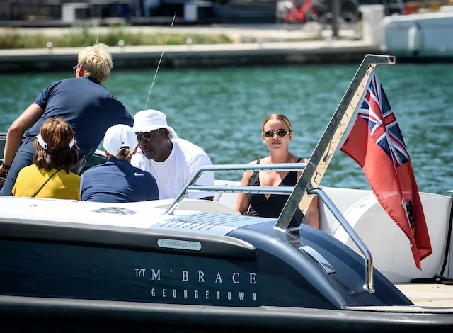 62岁的乔丹乘坐令人惊叹的超级游艇M'Brace抵达,这艘游艇的预估价值约1.5亿美元。与乔丹同行的还有他的妻子伊薇特-普列托(47岁)、他的两个女儿维多利亚和伊莎贝尔,以及母亲德洛里斯-乔丹。