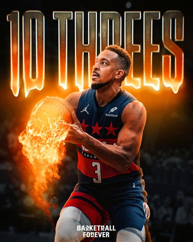 全场命中10记三分追平本赛季单场三分命中数纪录,半场命中7记三分创造奇才队史半场三分命中数纪录。
