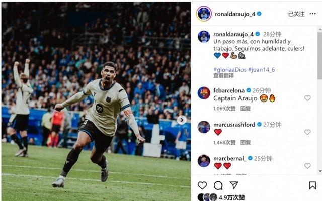 头球破门!阿劳霍社媒:我们怀着谦逊又迈出一步,继续前进!