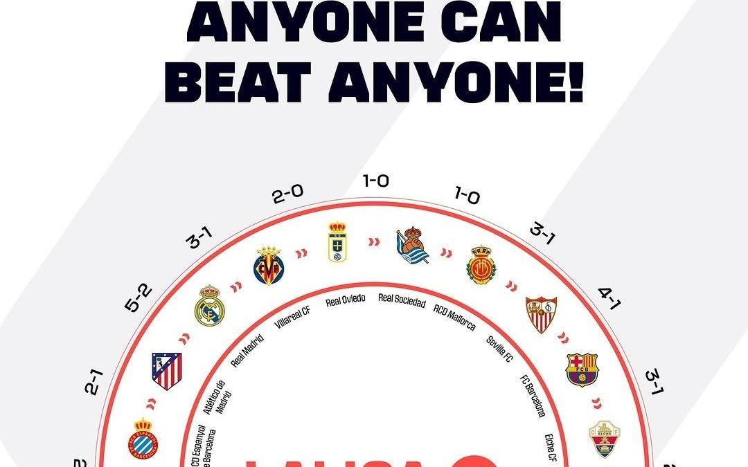 已成闭环!西甲官方晒20队胜负关系图:谁都可能战胜谁