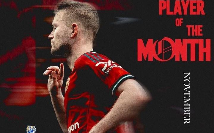 对热刺打进绝平球,曼联官方:德利赫特当选队内11月最佳球员