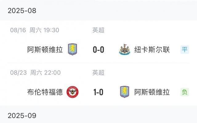 进攻哑火!维拉开赛2平2负陷降级区,全队身价英超第九却1球未进