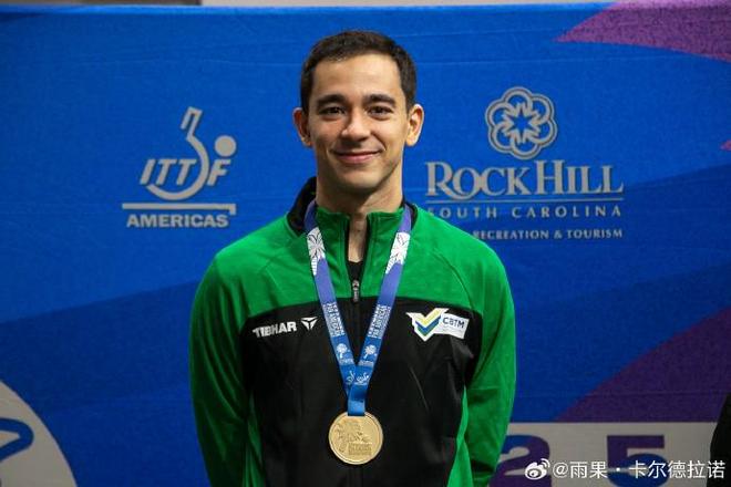 10月19日,巴西乒乓球名将雨果更新社媒,晒出自己在2025泛美洲锦标赛夺冠照片。本届比赛,雨果夺得男单冠军,已经取得5连冠,同时他也搭档布鲁娜夺得自己在泛美洲锦标赛的首个混双冠军。