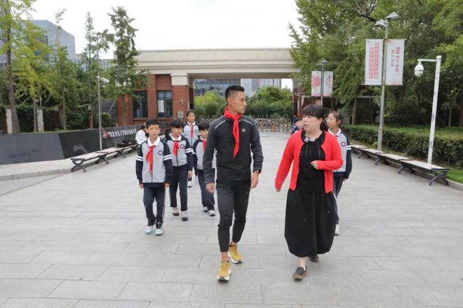 本次活动在秋日中拉开帷幕。八位小朋友在门口迎接陈老师,由副校长薛滢给冠军老师讲解学校里的体育活动,并参观学校体育设施。