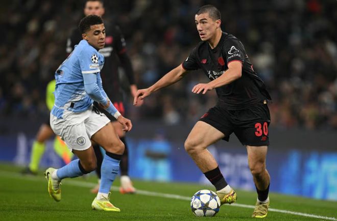 本场比赛,曼城大面积轮换,包括哈兰德在内的大多数主力坐在替补席,主教练瓜迪奥拉的调整影响了全队战斗力。主场面对勒沃库森,曼城创造威胁攻势寥寥无几,只有一次破门良机却没有把握住,反观防线遭到了打穿,来自格里马尔多的抽射破门,帮助勒沃库森1-0领先,这个比分也保持到上半场结束。