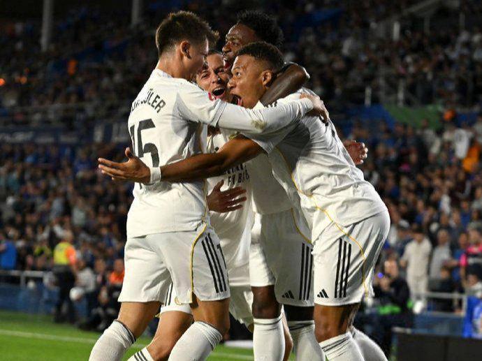 皇马首发:1-库尔图瓦、2-卡瓦哈尔、3-米利唐、17-劳尔-阿森西奥、18-A费、8-巴尔韦德、14-琼阿梅尼、30-马斯坦托诺、7-维尼修斯、10-姆巴佩、16-贡萨洛-加西亚。