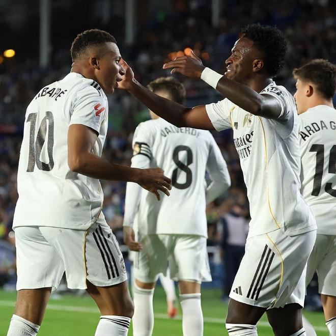 纵使马竞连续2个夏窗都签下了不少新援,但西甲这两年的争冠形势仍然是巴萨与皇马之间的“双龙会”。两大豪门轮流坐庄占据榜首位置,在巴萨本轮惊险绝杀赫罗纳后,皇马在北京时间10月20日凌晨迎来与赫塔菲的较量,维尼修斯直接制造对手2张红牌,姆巴佩一击制胜,皇马1:0客场带走3分。