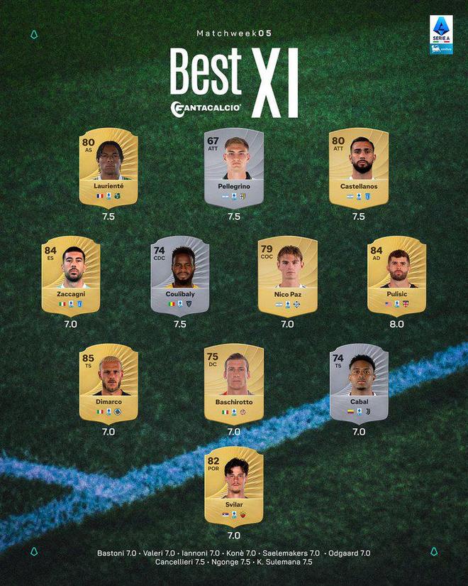 雷速体育9月30日讯 今天意甲官方公布了意甲联赛第5轮最佳阵容。