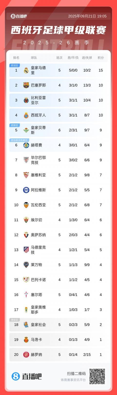 09月21日讯 西甲第5轮,赫罗纳主场0-4惨败于莱万特,继续稳居西甲垫底位置。本赛季西甲前5轮,赫罗纳仅取得1平4负,排名西甲倒数第一。