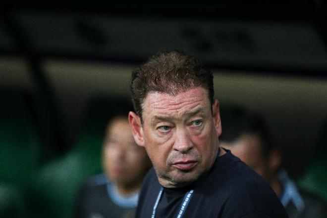 7月19日,上海申花队主教练斯卢茨基在比赛前。 当日,北京国安队主场1比3不敌上海申花队,结束了中超积分榜的领跑。 新华社发