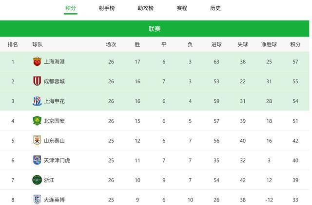 9月26日,中超联赛第26轮上演夺冠冲刺大戏,领头羊成都蓉城队在3比0领先的大好局面下竟被浙江队在最后时刻绝平,这让上海海港队主场3比2惊险战胜武汉三镇后意外成为领头羊,上海申花队以6比1击败副班长梅州客家迎来久违一胜继续排名第三。此外,上轮在争冠军团略显掉队的北京国安找回感觉,主场以4比2胜大连英博,理论上依旧保留夺冠希望。